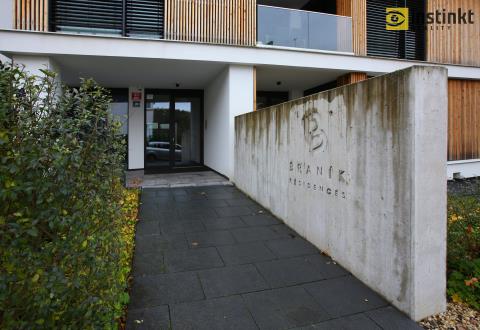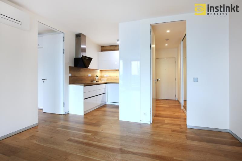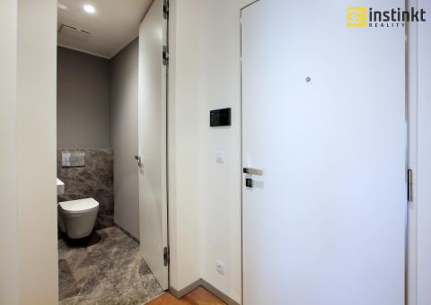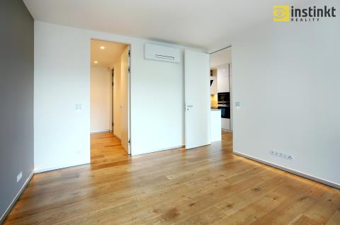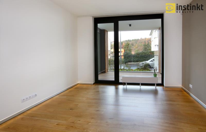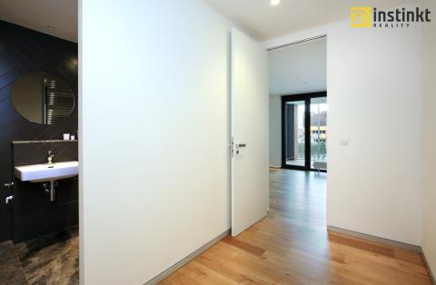 Velmi prostorný designový byt 2+kk s terasou a vybavením v top kvalitě, umístěný v nadčasové rezidenční novostavbě projektu “Braník Residences“.