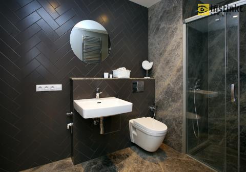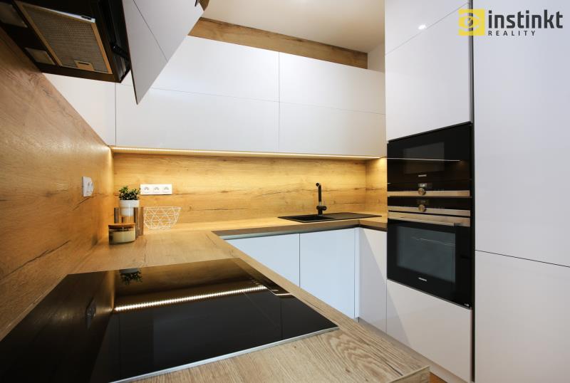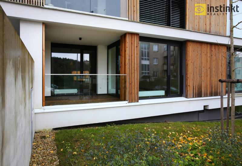 Ovládání domácnosti systémem SMART HOME – aplikace pro řízení osvětlení, zamykání, vytápění a mnoho dalších funkcí. Dřevěné podlahy se zápustnými lištami s LED podsvětlením. Bezfalcové dveře se skrytými zárubněmi vysoké až ke stropu. Z obou místností vstup na terasu. V obou místnostech síťové zásuvky s výborným pokrytím internetu (optická síť od firmy CETIN) a obě místnosti mají klimatizaci. Vytápění otopnými tělesy v kombinaci se stěnovým úsporným vytápěním, a dále možnost přitápět i klimatizacemi. Vysoce kvalitní bezpečnostní dveře. Zabezpečení prostoru proti vniknutí osob a rozbití oken. V celém objektu kamerový systém. U vstupu do domu obličejová detekce osob. Garážový prostor umožňuje užívat dvě návštěvnická místa a dobíjení elektrovozů (nabíjecí stanice innogy eBox smart). V budově se pravidelně vyskytuje správce objektu. Možnost zajištění pravidelného úklidu. V objektu kočárkárna a místnost pro popelnice.