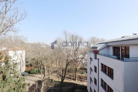 Nabízíme k pronájmu byt 2+kk/2xT, 82m2, v posledním patře rezidenčního domu s recepcí 24/7 a společnou zahradou pro obyvatele domu, v ulici U Nikolajky, Praha 5 - Smíchov. Byt je kompletně zařízený a sestává ze vstupní chodby, šatny, velké ložnice se vstupem na jednu terasu, koupelny s rohovou vanou a sprchou, prostorného obývacího pokoje s kuchyňským koutem a komorou s trezorem. WC je zvlášť. Z obývacího pokoje se vchází na druhou terasu. Obě terasy mají otevíratelnou střechu. V kuchyni lednice s mrazákem. myčka, mikrovlnná trouba, elektrická varná deska a digestoř. V koupelně je pračka. Topení a ohřev vody je centrální. Na podlahách dřevěné parkety a dlažba. Na oknech jsou venkovní žaluzie. K bytu je možnost si pronajmout i garážové stání. Dům se nachází v klidné části Smíchova.