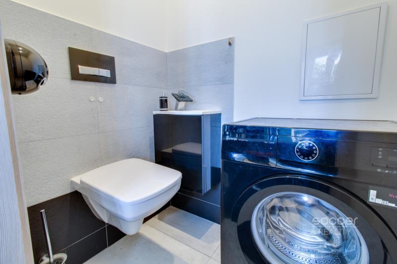 Pronájem luxusního bytu 2+kk + terasa (celkem 83,8 m2), obec Vojkovice, okres Mělník. V okolí obce jsou romantické rozlehlé rovinaté louky vhodné pro procházky a cykloturistiku, v létě pak řeka na koupání nebo rybaření, prostě ideální místo pro rekreaci a bydlení. Byt se nachází v prvním patře (2. NP), velikost samotného bytu je 51,6 m2 + terasa 32,2 m2. Plánky bytu a terasy naleznete ve fotogalerii u inzerátu. Byt se pronajímá plně zařízený. Dispozice bytu: velký obývací pokoj 23,65 m2 s kuchyňským koutem, krásná kuchyňská linka je bohatě vybavena (kuchyňský ostrůvek s dřezem a myčkou, chladnička s mrazákem, indukční varná deska + vestavná horkovzdušná trouba, mikrovlnka a digestoř – vše od Gorenje). Dále je v bytě ložnice 10,26 m2, koupelna 4 m2 (masážním sprchový kout, umyvadlo, toaleta a pisoár) a samostatné WC (umyvadlo, toaleta a pračka). Na obývací pokoj navazuje krytá terasa 12,2 m2 a na ni terasa 32,2 m2, obě terasy jsou pouze pro byt. Ložnice a koupelna mají designové předstěny pro zaručené soukromí. V bytě jsou léčebné solné stěny, exotická dekorace, plná zdraví. Ohřev podlahového topení a teplou vodu zajišťuje plynový kotel. Parkovací stání je hned před domem. Do obce jezdí autobus. Veškerá občanská vybavenost je v nedalekém městě Veltrusy nebo Kralupy nad Vltavou. Praha - Letňany 17 min autem po dálnici D8. Byt je volný do 10 dnů od složení rezervace. Pronajímatel preferuje nájemníky bez zvířat. Pronajímatel si vyhrazuje právo vybrat nájemce na základě jím zvolených kritérií.