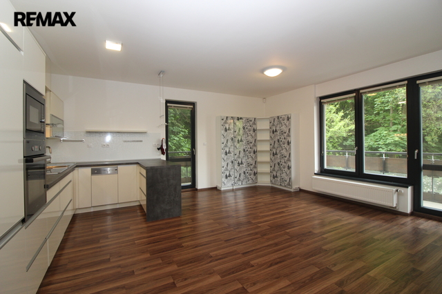 K dlouhodobému pronájmu nabízím krásný, částečně vybavený byt 2+kk o velikosti 85 m2 (byt 63 m2, terasa 22 m2) ve 2. patře (3NP), s garážovým stáním a komorou.