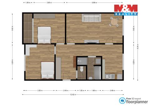 K pronájmu, Byt 2+1, 68 m2 Žatec, Volyňských Čechů