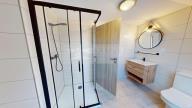 Stylová koupelna: Vybavená sprchovým koutem a místem pro pračku i sušičku.
