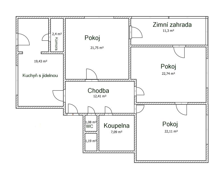 Nabízíme k pronájmu prostorný a světlý byt po rekonstrukci o dispozici 3,5+1, nacházející se v oblíbené lokalitě Brno – Černá Pole, na ulici Těsnohlídkova. Celková výměra bytu je 121,5 m² a dispozice jsou následující: • chodba 12,41 m² • kuchyně s jídelnou 19,43 m² (se vstupem do komory 2,4 m²) • pokoj 21,75 m² se vstupem do zimní zahrady 11,30 m² • zimní zahrada je průchozí do dalšího pokoje 22,74 m² • třetí pokoj o velikosti 22,11 m² Pokoje jsou průchozí, ale zároveň mají i samostatné vstupy z chodby. Z chodby se dále vchází na samostatné WC (1,08 m²) a do koupelny (7,09 m²) vybavené vanou a druhou toaletou. Vytápění i ohřev vody zajišťuje samostatný plynový kotel. Byt je díky své dispozici vhodný pro rodinu nebo jako spolubydlení. Byt se pronajímá nezařízený. Lokalita nabízí veškerou občanskou vybavenost – restaurace, kavárny, obchody i parky. Do centra města je to přibližně 10 minut.