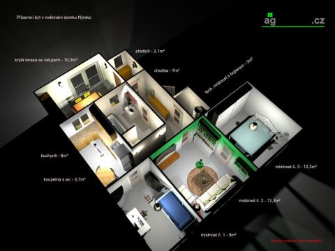 AGbydleni.cz Vám nabízí k dlouhodobému pronájmu světlý a dobře dispozičně řešený byt o velikosti 3+1 a rozloze 67 m2, který se nachází v přízemí rodinného domu v Nýrsku. Byt má samostatný vchod, což zajišťuje naprosté soukromí. K bytu navíc náleží krytá terasa, ideální pro relaxaci nebo posezení s rodinou a přáteli za každého počasí. Kuchyně je vybavena kuchyňskou linkou s dostatkem úložného prostoru, dřezem, kombinovanou lednicí a elektrickým sporákem. Koupelna je vybavena vanou a umyvadlem, toaleta je oddělená příčkou. V bytě jsou zavedeny všechny inženýrské sítě je napojen na obecní vodovod i kanalizaci. Fotografie jsou starší a některé místnosti prošly úpravami (nové stěny, odstraněné palandy, tapety, lino a obložení). Byt je nově vymalovaný, osazen novým osvětlením, proto se může lišit od aktuálního stavu. V celém bytě jsou osazeny plastová okna. Vytápění bytu je řešeno pomocí plynových WAFek. Byt má samostatný elektroměr, plynoměr i vodoměr. Veškeré energie se převádí na nájemce. Měsíční nájemné 13.000 Kč Kauce 20.000 Kč Provize RK 13.000 Kč + 21% DPH K nastěhování ihned. V případě zájmu o prohlídku nebo více informací nás neváhejte kontaktovat.