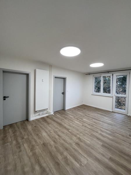 K dlouhodobému podnájmu Vám nabízíme krásný nově zrekonstruovaný byt 3+1 s balkonem v žádané lokalitě Olomouc - Nová Ulice. Nachází se na ulici Foerstrova, výborná poloha zajišťuje krátkou docházkovou vzdálenost do centra a blízkost přírody. Výhodou je také výborné dopravní spojení, zastávka autobusu hned u domu a blízké napojení na městský obchvat. Mateřská a základní škola s knihovnou u domu. Supermarket Lidl tři minuty chůzí od domu. Parkovaní na vyznačeném parkovišti v okolí domu. Byt o celkové výměře 68 m2 s balkonem je umístěn ve třetím poschodí bez výtahu. Při vstupu do bytu uvidíte prostornou chodbu s úložným prostorem a vstupy do jednotlivých místností. Dispozice nabízí koupelnu s umyvadlem, sprchovým koutem, úložnými prostory. Toaleta se nachází zvlášť. Dominantou bytu je moderní, funkční kuchyňská linka s kompletně vestavěnými spotřebiči (lednice, trouba, varná indukční deska, myčka, mikrovlnná trouba), jídelní stůl s výhledem do zeleně. Velmi dobře prosvětlený prostor nabízí obývací pokoj s dostatkem místa pro sedací soupravu, televizní stěnu. Z obývacího pokoje je přístup do dvou pokojů, které nabízí prostor pro postele a skříně. . Vytápění domu řešeno dálkově s přenosem tepla do radiátorů. Byt je pronajímán ve stavu na fotografiích. Ihned k nastěhování. Energetická třída: G.