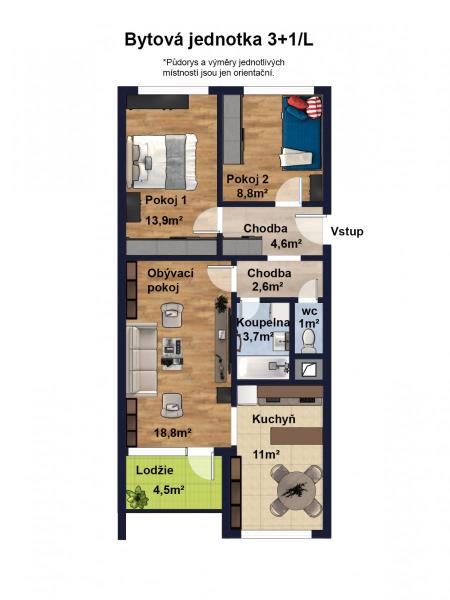 K pronájmu, Byt 3+1, 72 m2 Křivenická