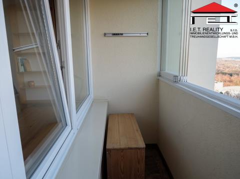 Tento elegantně zařízený byt o velikosti 74 m² se nachází ve velmi dobře udržované panelové budově v 9. patře. Budova nabízí 2 výtahy, jeden menší a jeden větší. Interiér je vkusně zařízen a disponuje veškerým moderním vybavením. Dispozičně se skládá ze tří větších neprůchozích místností o velikostech 13,8 m², 13,11 m² a 18,87 m², chodby o velikosti 9,4 m², kuchyně o velikosti 12,13 m², koupelny o velikosti 3 m², samostatné toalety o velikosti 1,22 m² a spíže/místnosti pro sklad o velikosti 2,52 m². K bytu také patří 2 lodžie o velikosti 2,8 m² jednotlivě a sklepní kóje v suterénu budovy.