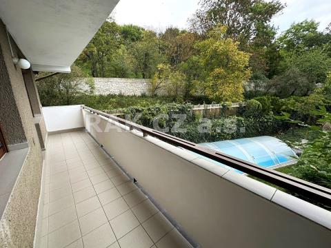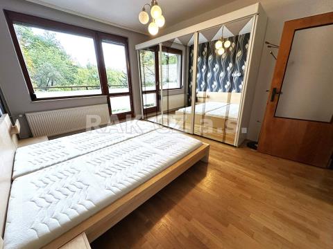 Ihned volné ; rekonstruovaný, velmi prostorný byt ; panoramatické výhledy na Prahu ; klidné místo, příroda na dosah ; v blízkosti parku Ladronka. Předmětem pronájmu je světlý, prostorný, částečně zařízený byt 3+1 s lodžií a balkonem, situovaný ve II. nadzemním podlaží rodinného domu o 3 bytových jednotkách, na konci klidné slepé ulice, na adrese Praha 5 – Smíchov, ulice Zdíkovská. Celková užitná plocha bytu činí 81 m2 + lodžie 10,7 m2 + balkon 2,9 m2. Dispozičně se jedná o vstupní halu, z níž jsou samostatně přístupné všechny další místnosti. Těmi jsou velký obývací pokoj s balkonem (orientovaný do ulice - na západ) ; dvě samostatné, částečně zařízené ložnice – z jedné vstup na lodžii (orientované do zahrady – na východ) ; dále plně vybavená kuchyně (plynový sporák, digestoř, lednice s mrazákem, myčka, horkovzdušná a mikrovlnná trouba, kráječ, kávovar, topinkovač) ; koupelna s vanou, umyvadlem, topným žebříkem a přípravou k napojení pračky a samostatná toaleta. Na podestě domu, před vstupem do bytu, jsou velké vestavěné skříně, všechna okna disponují předokenními roletami. Vytápění a ohřev vody zajišťuje centrální plynový kotel, součástí nabídky je internetové připojení. Fotografie jsou aktuální a odpovídají stávajícímu provedení a stavu. Místo disponuje dobrou občanskou vybaveností a dopravní dostupností. Parkování je možné před domem na ulici. PENB nebyl doložen, uvádíme proto třída G (předpoklad třída C). Byt, dům i jeho okolí vám rádi osobně ukážeme. Více informací u makléře, či dle fotodokumentace.