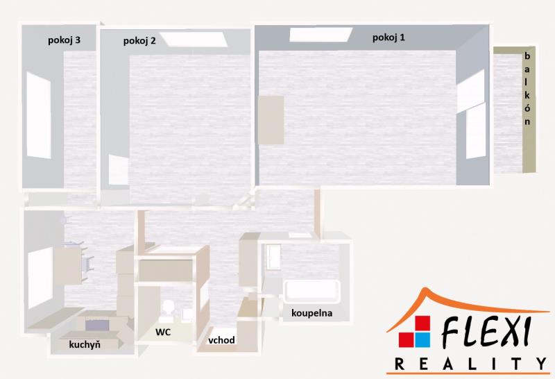 K pronájmu, Byt 2+1, 66 m2 Ostrava, Veleslavínova