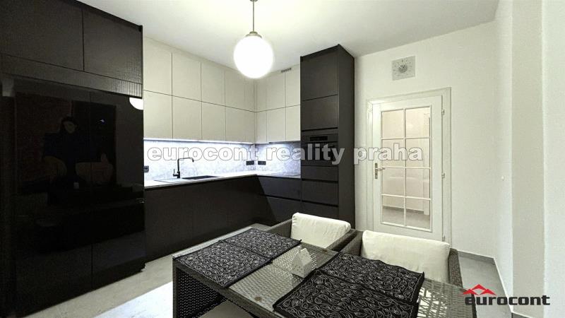Zrekonstruovaný byt v krásném vilovém domě s vlastní zahradou. Vila se nachází nedaleko metra C Roztyly, Kačerov nebo Budějovická v klidné vlivé čtvrti. V domě jsou pouze 3 bytové jednotky a tento má zcela samostatný vlastní vstup s parkovacím místem přímo na zahradě. +samostatný vstup + zahrada 400m2, +parkování pod uzavřením na pozemku. Moderní 3+1, 116m2, nová luxusní kuchyně se všemi spotřebiči, jídlení stůl, židle, sedací souprava, TV se soundbarem, jídelna možnot nábytek po dohodě vystěhovat, nová postel, koupelna s vanou i sprchovým koutem a wc. Možnost alarmu, vytápení plynový kotel + topení v podlaze (kuchyně předsíň, koupelna), v ceně internet. Samostatný vchod i vjezd na pozemek jen pro tento byt. Adresa: ul. Obrovského, Praha 4 Chodov.