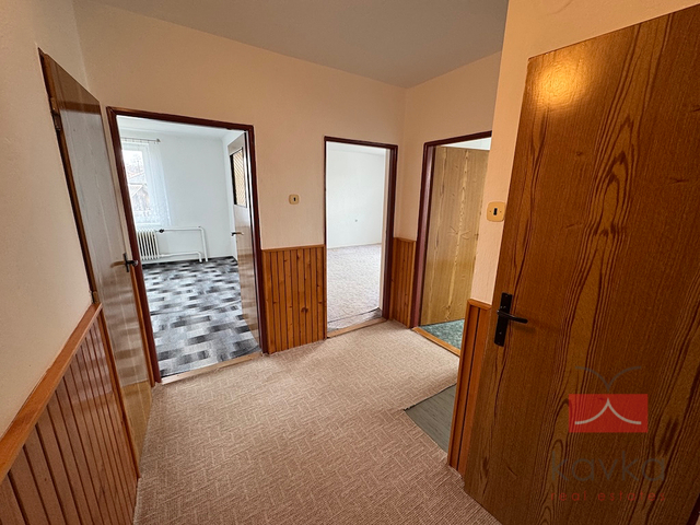 KAVKA REAL ESTATES si Vám dovoluje exkluzivně nabídnout k pronájmu družstevní byt 3+1 o užitné ploše 76,96 m2 a celkové užitné ploše 99,46 m2 v obci Kejžlice - nedaleko Humpolce (6 km – pět minut jízdy autem). Byt se nachází ve 1.NP cihlového domu bez výtahu. Dispoziční členění bytu: vstupní chodba, samostatné WC, koupelna (vana), kuchyň s jídelnou, spíž, obývací pokoj, ložnice, pokoj, sklad, vstupní chodba. Dále k bytu náleží sklepní kóje (8 m2) a kotelna včetně skladu na tuhá paliva (14,5 m2). Vytápění bytu je řešeno plynovým kotlem a kotlem na tuhá paliva. Rekonstrukce únor 2025 (nová plastová okna, vymalování bytu). Velmi klidná lokalita. Veškerá občanská vybavenost v obci. V případě zájmu o více informací či prohlídku kontaktujte makléře společnosti.