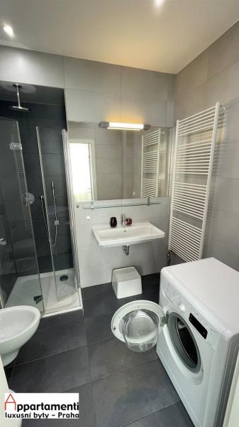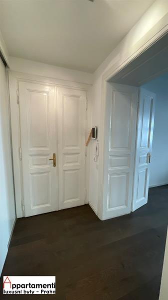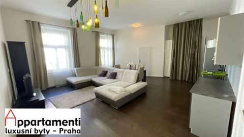 Pronájem krásně a citlivě zrekonstruovaného bytu v roce 2012 za použití kvalitních materiálů. Dispozice 3+kk 86,5m2, byt je uspořádán předsíň s vestavěnou skříní a plynovým kotlem o velikosti 7,4m2, velký zařízený obývací pokoj s kuchyňským koutem, pracovna (šatnakomora) s oknem 44,8m2, ložnice 10m2, druhá ložnice 16m2, 2x koupelna první s vanou a WC ,druhá se sprchovým koutem WC a bidetem a pračkou 4,7m2 a 3,6m2. Interiér bytu je realizován v moderním nadstandardním provedení s použitím materiálů od předních italských výrobců jako jsou Ceramica, Catalano, Zucchetti Tre Piu. Při návrhu a realizaci byl kladen důraz především na čistý design a kvalitu provedení. Vysoké bez zárubňové dveře. Kvalitní dřevěná podlaha. Italské designové baterie. Závěsný bidet a WC v koupelnách, Moderní umyvadla. iPad napojený na kamerový systém. Nový výtah v domě. Designová řada vypínačů Swing ABB . Velká okna, vysoké stropy, ideální pro rodinu s dětmi, nebo pro studenty. Minimální doba pronájmu 6 měsíců.