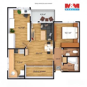 Nabízíme k pronájmu prostorný byt 3+kk o užitné ploše 68 m², nacházející se v klidné části Liberce VI-Rochlice, ul. Nádvorní. Tento byt je umístěn v cihlovém domě z roku 2009 a nabízí ideální kombinaci klidu a dostupnosti městské infrastruktury. Byt je ve velmi dobrém stavu a je připraven k nastěhování od 1.12.2025. Dispozice bytu zahrnuje prostorný obývací pokoj uprostřed bytu, dále kuchyň, dvě ložnice, koupelnu a samostatné WC. Lokalita nabízí veškerou občanskou vybavenost, včetně obchodů, škol a veřejné dopravy. K bytu náleží sklepní kóje. Nájem je 18 000,- Kč, stejně tak provize RK. Vratná kauce činí 30 000,- Kč. Zálohy na energie záleží na počtu osob užívající byt, aktuálně je záloha nastavena na 3 044,- Kč. Elektřinu si řeší nájemník sám. Po nájemnících bude majitel vyžadovat pojištění domácnosti a potvrzení bezdlužnosti. Pokud hledáte komfortní bydlení v klidné části města, tento byt je pro Vás ideální volbou. Neváhejte a domluvte si prohlídku ještě dnes.