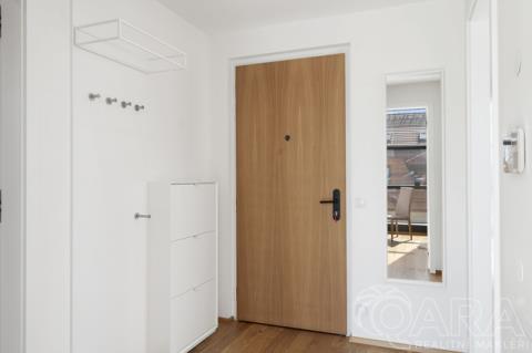 Atmosféru domova dotváří krb v obývací části, zatímco dvě jižně orientované terasy poskytují nerušené soukromí a krásné výhledy do pečlivě udržovaného areálu, který je přístupný pouze obyvatelům rezidence.