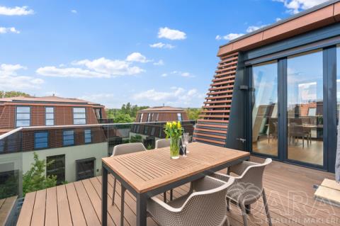 Výjimečný penthouse 3+kk vás přivítá vzdušností, světlem a dvěma jižně orientovanými terasami, ze kterých se otevírají působivé výhledy na vinici sv. Kláry a okolní zeleň. V horním podlaží prestižní rezidence Chateau Troja Residence si užijete naprosté soukromí, klid a atmosféru, kterou nabízí jen bydlení v Troji.