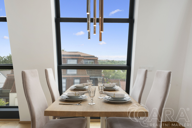 Měsíční nájemné zahrnuje pronájem plně vybavený penthouse nábytkem a spotřebiči, 1 garážového stání a sklepa: 59 000 Kč,