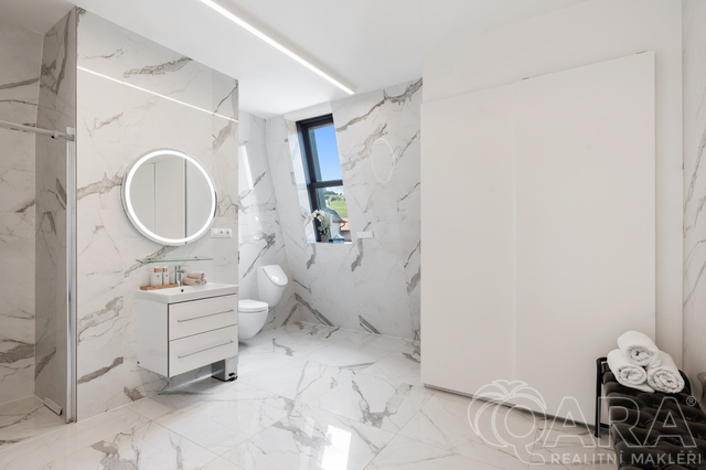 ✔️ Druhá koupelna s přípravou na saunu, sprchovým koutem, toaletou, pračkou a sušičkou