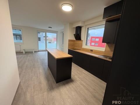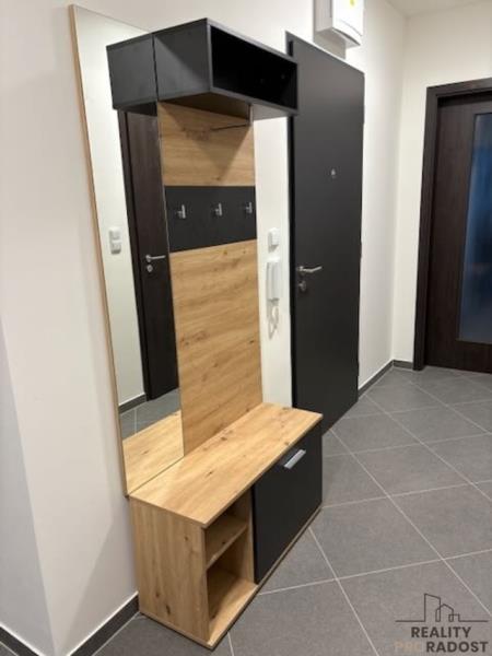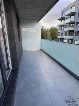 Dispozice bytu zahrnuje prostorný obývací pokoj, který je propojen s kuchyňským koutem, dvě ložnice a koupelnu. Navíc je k dispozici balkón o výměře 13 m² a lodžie 8 m², ideální pro relaxaci a užívání si příjemných slunečných dni. V chodbě se nachází předsíňová stěna se zrcadlem a botníkem, v obývacím pokoji je umístěn moderní TV stolek, konferenční stolek, v kuchyni je moderní rohová linka s ostrůvkem, vestavné značkové spotřebiče MORA (myčka, indukční varná deska, trouba, mikrovlnka, designový dřez Franke z umělého kamene onyx s baterií se sprškou), lednice s mrazákem zn. Siguro, v ložnici praktická rohová skříň se zrcadlem, v druhém pokoji prostorná nová skříň se zrcadlem, koupelna je vybavena velkoprostorovým 90cm umyvadlem se zapuštěným zrcadlem a designovou skříňkou, topný žebříček, sprchový kout se skleněnou zástěnou, příprava na pračku a sušičku, WC závěsným rimless klozetem zn. Laufen, baterie zn. Hansgrohe, protipožární vstupní dveře zn. Sapeli (domovní telefon pro pohodlný a kontrolovaný přístup návštěv do budovy), interiérové dveře rovněž zn. Sapeli v designu Wenge. Všechna okna vč. velkých francouzských budou před předáním vybavena horizontálními žaluziemi. Majitelé jsou ochotni byt ještě dovybavit po dohodě se zájemcem, případně upravit výši nájemného nebo vratné kauce v případě vybavení bytu vlastním zařízením ze strany nájemce. K nadstandartnímu vybavení bytu patří