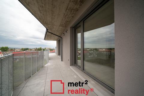 Pronájem bytu 3+kk s prostorným balkonem a terasou v moderní novostavbě cihlového bytového domu ,,B" v Olomouci – Holici na ulici U Solných mlýnů. Byt o výměře 59 m2 + balkón a terasa se nachází v 5.NP domu ,,B" s výtahem a je orientován na západní stranu. Bytovou jednotku tvoří předsíň (s možností umístění šatní skříně), obývací pokoj s kuchyňským koutem, dva samostatné pokoje, balkon o výměře 21,78 m2, terasa o výměře 27,92 (na které je vstup ze všech pokojů) a dále koupelna se sprchovým koutem, topným elektrickým žebříkem, toaletou, přípojkou na pračku a možností umístění sušičky. Součástí kuchyňské linky je sklokeramická varná deska, přípojka na myčku, el. trouba a digestoř. Okna jsou osazena trojskly a předokenními žaluziemi na elektrické ovládání. Podlahy v pokojích a v předsíni jsou vinylové, v koupelně dlažba. V celém bytě je podlahové topení, které v letních měsících plní i funkci chlazení. Nájemník má možnost si sám regulovat teplotu v bytě prostřednictvím vlastního termostatu. Vytápění i chlazení bytů zajišťují tepelná čerpadla umístěna v 1. NP domu. Byt je vybaven rekuperací, která slouží k řízené výměně vzduchu ve všech místnostech v bytě. Připojení k vysokorychlostnímu internetu je zajištěno společností ONYX engineering, spol. s.r.o. a nájemník si v případě zájmu hradí sám. Možnost připojení na televizní a rozhlasový signál je pro nájemce zdarma. K bytu náleží samostatná komora v 5.NP domu o výměře 4,36 m2. Možnost pronájmu parkovacího stání v 1. NP domu, mezi prvními v Olomouci možnost nabíjení elektromobilu přes noc přímo na parkovacím stání nájemníka. v domě je také místnost pro umývání kol. Cena je uvedena bez záloh na energie a služby v celkové výši 5.400 Kč / měsíc. Zálohy na energie a služby budou majitelem pravidelně vyúčtovány dle skutečné spotřeby. V blízkém okolí je kompletní občanská vybavenost městské části Holice s množstvím služeb a obchodním centrem Olympia. Lokalita je ve vynikající dopravní dostupnosti jak do centra města, tak k dopravnímu uzlu s napojením na dálnici. Energetická náročnost budovy třída B - velmi úsporný. Byt je k dispozici ihned.