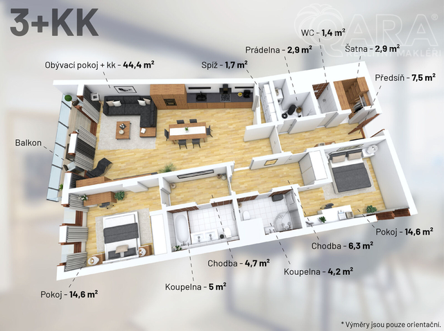 Luxusní byt 3+kk k pronájmu se nachází v moderním bytovém domě s atriem a recepcí, který zaručuje bezpečí i pohodlí. Tento prostorný byt je kompletně a vkusně zařízen, s důrazem na kvalitu a eleganci. Obývací pokoj je propojený s jídelním koutem a plně vybavenou kuchyní v moderním stylu. Velká okna dodávají interiéru dostatek denního světla a umožňují výhled do okolí. V rezidenci je k dispozici nonstop recepce, která zajišťuje bezpečnost a pohodlí pro rezidenty. Atrium domu poskytuje krásný a klidný prostor pro odpočinek. Parkování je zajištěno v podzemních garážích. Tento byt nabízí ideální kombinaci luxusu, pohodlí a moderního bydlení na výborné adrese. Rezidenční park Baarova je moderní projekt, jenž je charakterizován motem - styl, komfort a bezpečí. Lokalita se může pochlubit vynikající a bezproblémovou dopravní dostupností a skvělou občanskou vybaveností - kromě celé řady obchodů a služeb naleznete v blízkém okolí i řadu restaurací, wellness a fitness klub Balance Club Brumlovka, zelenou oázu v podobě Baarova parku, který těsně navazuje na rezidenční projekt. Nechybějí zde ani zdravotnická zařízení, dětské a multifunkční hřiště, mateřská a základní škola, či společenské centrum. Těším se na prohlídku s Vámi , prosím kontaktujte mne +420775208087 Anna Michňová.
