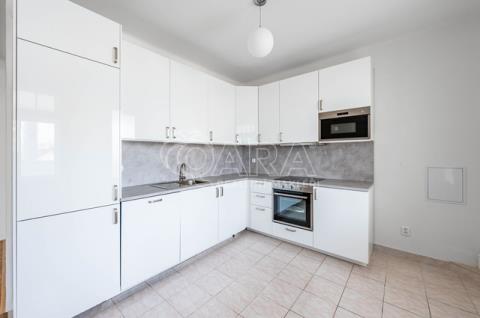 Dispozice bytu zahrnuje obývací pokoj s kuchyňským koutem, dva neprůchozí pokoje, koupelnu s vanou, druhou koupelnu se sprchovým koutem, samostatné wc, zimní zahradu. Byt je orientovaný na severozápad. Bytová jednotka je pronajímána bez vybavení vyjma kuchyně. Plně vybavená kuchyňská linka (varná deska, el. trouba, lednice, mrazák, myčka, mikrovlnná trouba, digestoř).