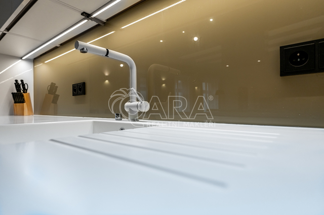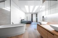 Bytu dominuje otevřený prostor obývacího pokoje s kuchyní, dvě prostorné ložnice, jedna ložnice s vlastní koupelnou s vanou a sprchovým koutem, druhá koupelna opět s vanou a sprchovým koutem.