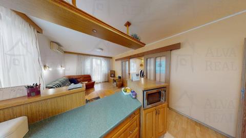 Měsíční náklady: 6.000 Kč, topení: plynový kotel + radiátory, vodní podlahové topení v obývacím pokoji s kuchyní.