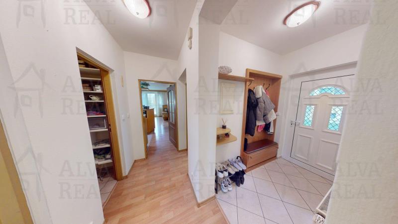 Dispozice: Obývací pokoj 14,2 m²; ložnice 9,4 m²; pokoj 10,8 m²; kuchyně 8,7 m²; koupelna 6,5 m²; WC 2 m²; chodba 3,2 m²; předsíň 3,2 m²; spíž 2,7 m²; terasa 12 m².