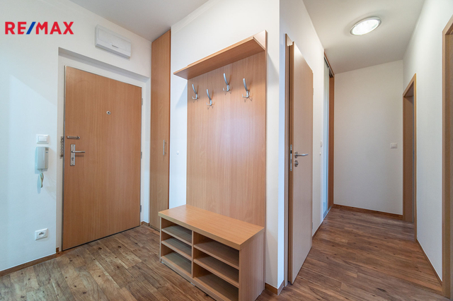 V obývacím pokoji je kožená rohová sedačka, skříňka pod TV, jídelní stůl se židlemi, moderní kuchyňská linka s vestavnými spotřebiči (lednice s mrazákem, vinotéka, varná deska, el. trouba, mikrovlnná trouba, myčka nádobí, digestoř, pračka). V ložnici je k dispozici manželská postel a dvě šatní skříně. V pokoji je velká vestavěná skříň s posuvnými dveřmi. Na chodbě se nachází prostorná vestavěná skříň nahrazující komoru. V koupelně je nadstandardně prostorný sprchový kout a skříňky. Toaleta je samostatná.
