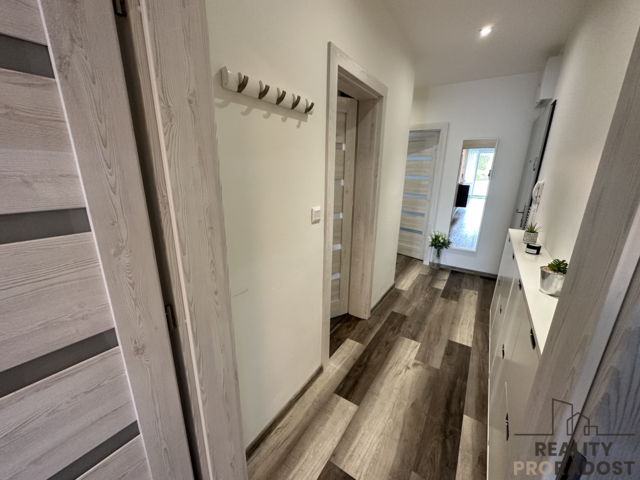 Hledáte klidné bydlení v moderním bytě přímo u parku? Tato nabídka je pro vás tou pravou volbou! Nabízíme k pronájmu nadstandardní byt 3+kk o velikosti 71 m² s prostorným balkonem 9 m² a dvěma venkovními parkovacími místy, nacházející se v rezidenčním komplexu v Zábřehu na Moravě. Skvělá dopravní dostupnost do Šumperka a Mohelnice je samozřejmostí. Byt je situován ve 2. patře novostavby cihlového domu s výtahem. Dispozice zahrnuje propojený obývací pokoj s kuchyňským koutem, což vytváří ideální prostor pro rodinný život. Součástí vybavení je: kuchyňská linka na míru s vestavěnými spotřebiči (indukční varná deska, elektrická a mikrovlnná trouba, digestoř, myčka, lednice, mrazák), jídelní stůl se čtyřmi židlemi, pohodlná pohovka značky Polstrin, konferenční stolky a další nábytek ve sladěném designu, ložnice s vestavěnou skříní a postelí, dětský pokoj se skříní a rozkládací postelí, koupelna s vanou i sprchovým koutem, pračka a sušička značky Siemens, samostatné WC s umyvadlem, prostorná vstupní chodba s botníkem, podlahové vytápění v celém bytě a chytré osvětlení ovladatelné přes mobilní zařízení. Byt je k nastěhování ihned po dohodě. Lokalita: Ulice Československé armády, Zábřeh na Moravě – v těsné blízkosti lesa, řeky a krásné přírody. V dosahu se nachází veškerá občanská vybavenost potřebná pro pohodlný život. Neváhejte a domluvte si prohlídku co nejdříve – tento byt si zamilujete na první pohled!