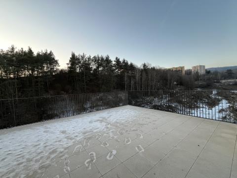 Nabízíme k pronájmu výjimečný plně vybavený byt 3+kk o podlahové ploše 76 m², situovaný ve 4. patře bytového domu s výtahem, v Českém Krumlově. Jedná se o byt pro klienty, kteří hledají vysoký standard bydlení, komfort a soukromí. Interiér bytu byl kompletně navržen a realizován ve spolupráci s bytovou designérkou. Každý detail je promyšlený, provedený na míru a laděný do nadčasového a elegantního stylu. Dominantou bytu je prostorný obývací pokoj propojený s moderní kuchyní, který působí velmi vzdušně a příjemně. Z obývací části je vstup na terasu s výhledem do klidné části, vybavenou zahradním nábytkem, ideální pro relaxaci. Kuchyňská linka na míru je osazena kvalitními vestavnými spotřebiči, včetně myčky nádobí, vyvýšené trouby, mikrovlnné trouby a lednice s mrazákem. Byt nabízí komfortní ložnici a další samostatný pokoj vhodný jako dětský pokoj, pracovna nebo pokoj pro hosty. Velkým benefitem je množství úložných prostor v podobě vestavěných skříní na míru. Koupelna je řešena ve vysokém standardu a disponuje jak vanou, tak sprchovým koutem, toaleta je samostatná. Samozřejmostí je pračka a sušička, kvalitní sedací souprava a kompletní vybavení, které umožňuje okamžité nastěhování bez nutnosti dalších investic. Součástí pronájmu je parkovací stání v podzemních garážích a sklepní kóje. Byt je vhodný pro pár nebo rodinu, kteří hledají klidné a komfortní bydlení s výbornou dostupností do centra Českého Krumlova a zároveň mimo jeho ruch.
