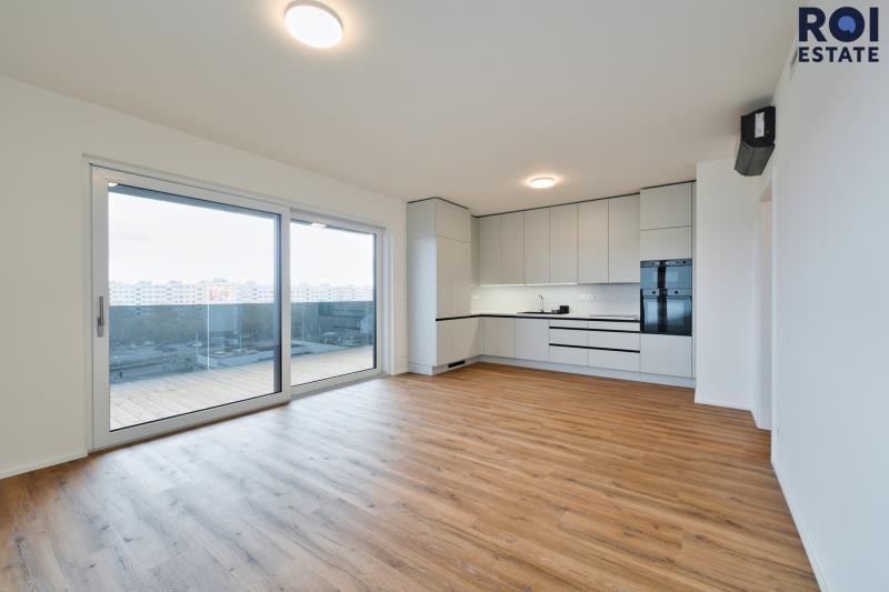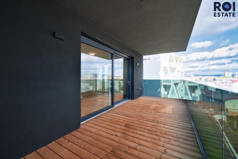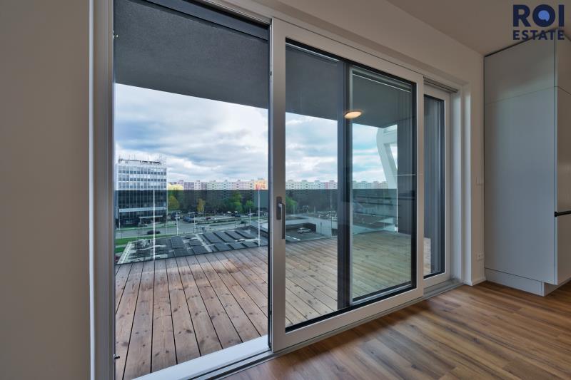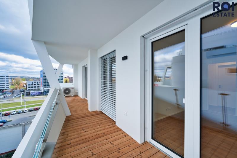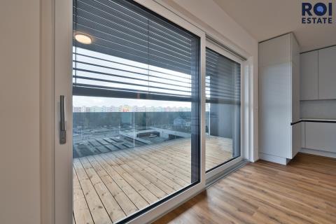 V Rezidenci Meridiem nabízíme k dlouhodobému podnájmu moderní byt 3+kk ve 6. patře, který už na první pohled zaujme terasami přístupnými ze všech pokojů. Byt je světlý, vzdušný a díky neprůchozím pokojům poskytuje dostatek soukromí pro pár, rodinu i kohokoli, kdo ocení klid a prostor.