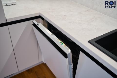 Koupelna a toaleta jsou oddělené a kuchyňská linka je vybavena všemi spotřebiči, takže stačí přinést věci a bydlet. Klimatizace i rekuperace zajišťují pohodlí po celý rok.