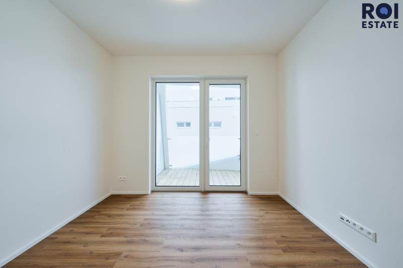 Terasový prostor obíhá celý byt a dá se využít naplno – ráno na kávu, večer na odpočinek a přes den třeba i jako příjemné venkovní místo pro miminko v kočárku. Je dostatečně prostorná, klidná a ideální pro krátké odpolední pauzy na čerstvém vzduchu.