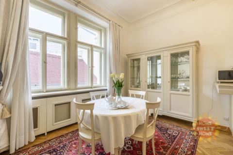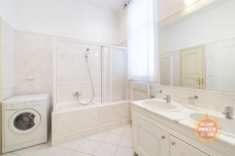 Nabízíme k pronájmu velmi pěkný byt 3+kk o celkové rozloze 79m2 v luxusně zrekonstruovaném reprezentativním secesním domě v samém srdci Prahy nedaleko Staroměstského náměstí a nábřeží Vltavy, Truhlářská, Praha 1 - Nové Město. Apartmán se skládá z jídelny s kuchyňským koutem, obývacího pokoje, ložnice, koupelny a chodby a je zařízený vysoce kvalitním a stylovým italským nábytkem. V jídelně najdete plně vybavenou a na míru navrženou kuchyň, jídelní stůl se židlemi, vitrínu a velkou komodu, vše z masivního dřeva s lesklým povrchem. Obývací pokoj je také zařízený nábytkem z masivního dřeva a koženou pohovkou.Kromě manželské postele nabízí ložnice také dostatek úložného prostoru díky velké vestavěné skříni. V koupelně je vana a pračka. Všechny pokoje mají dřevěné parketové podlahy a koupelna je obložená dlažbou. Výborná lokalita - v historickém centru města poblíž náměstí Republiky (metro B, tramvaje č. 5, 8 a 14). V okolí spousta obchodů (např. nákupní centrum Palladium), restaurací, kaváren, škol.