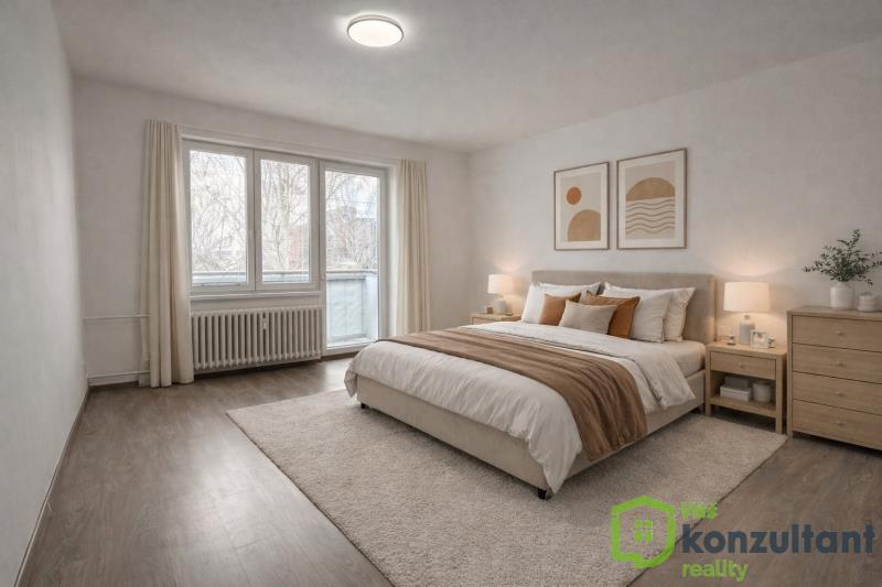 Ložnice je velmi prostorná a má přímý vstup na balkon. Další pokoj je samostatný a může sloužit jako dětský pokoj, pracovna nebo pokoj pro hosty.