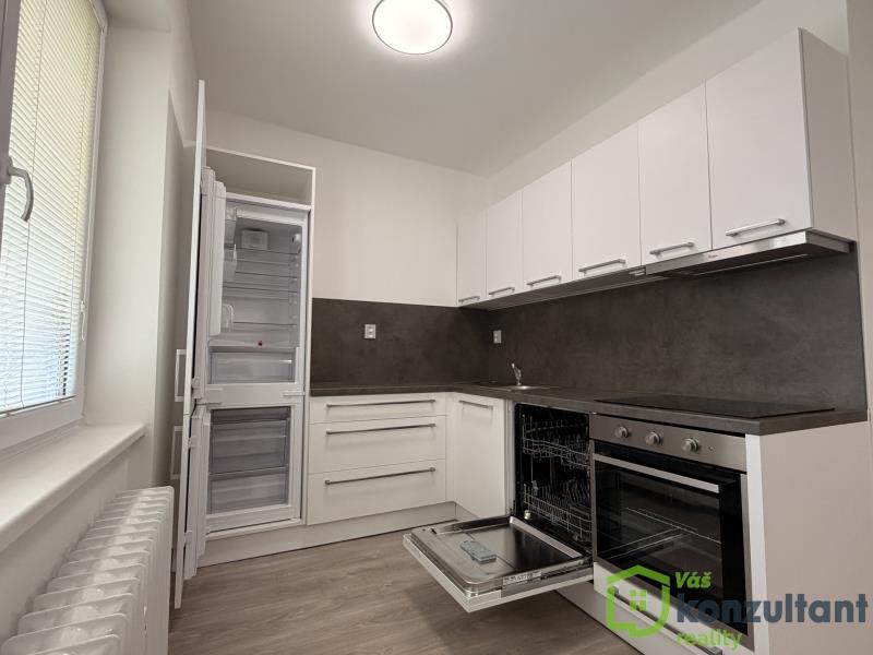 Kuchyně je kompletně vybavená. K dispozici je kombinovaná lednice s mrazákem, nová myčka na nádobí, nový elektrický sporák, indukční varná deska, digestoř, dřez a další vybavení, které usnadní každodenní fungování domácnosti.