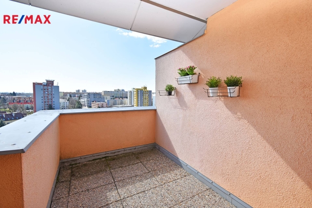 Bytová jednotka se nachází v panelovém domě po kompletní rekonstrukci, v nástavbě domu 8. a 9. patro. Výtah v domě je umístěn do 7.patra a poté jsou k bytu schody. V přízemí domu prostorná kočárkárna /kolárna s bezpečnostními dveřmi.