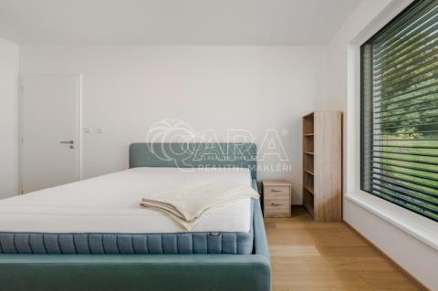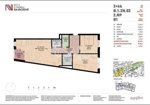 Nadstandardní byt disponuje podlahovou plochou 86,80 m2 + 3,52 m2 lodžie a nachází se ve 2. nadzemním podlaží žádaného projektu Byty Na Vackově. Zkolaudováno na konci roku 2022. Součástí vybavení je na míru zhotovená kuchyňská linka značky Hanák Designs s vestavěnými kvalitními spotřebiči (indukční varná deska, mikrovlnná trouba a myčka, zabudovaná digestoř, lednice, mrazák). Koupelna s vanou a pračkou se sušičkou. Samostatná toaleta s umyvadlem. Komora, která nabízí další úložný prostor nebo ji lze využít jako šatnu. Podlahy v bytě jsou velmi kvalitní dřevěné, plovoucí v koupelně a na WC je dlažba. Dostatek úložného prostoru zabezpečují veškeré skříně, které jsou umístěny v předsíni a ložnici. Součástí vybavení je také dvoulůžko v ložnici a další nábytek jako je nová sedací souprava, televize (4K Ultra HD Smart TV), jídelní stůl, židle nebo posezení na terásce. Druhá ložnice záměrně bez vybavení. Možno vybavit jako pracovnu či dětský pokoj. Obě ložnice na východ mají výhled do klidného vnitrobloku a do parku Židovské pece. V přízemí domu budete moci využívat komfortní sklep o velikosti 2,5 m2 a v podlaží -2 velké parkovací stání 13 m2. V domě je k dispozici také kočárkárna a kolárna.