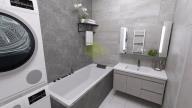 Kuchyňský kout je vybaven kuchyňskou linkou s indukční varnou deskou, elektrickou troubou, přípravou na myčku nádobí a samostatně stojící lednicí s mrazákem. V koupelně se nachází vana, umyvadlo, otopný žebřík a příprava pro pračku. Byt se pronajímá nevybavený, s výjimkou kuchyňské linky a spotřebičů.