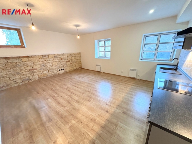 Nabídka pronájmu stylového, nově zrekonstruovaného bytu se zachovanými designovým prvky původního zdiva o dispozicí 3+kk (vnitřní plocha 95 m2) s uzavřeným parkovacím stáním, který leží ve 2. NP zrekonstruované budovy bývalého statku v příjemné a klidné lokalitě Prahy 5 – Zličín (ulice Hrozenkovská). Vstup do domu je z uzavřeného nádvoří. Interiér bytu se skládá z centrální chodby, dále pak velkého obývacího pokoje s kuchyňským koutem (nová kuchyňská linka se spotřebiči), dvou samostatných pokojů (jeden kokoj s uložným výklenkem), koupelny s vanou a samostatného WC s umyvadlem. Pokoje a chodba jsou osazeny kvalitní plovoucí podlahou, v koupelně a WC je příjemná moderní dlažba. Vytápění je formou elektrických topných těles, ohřev vody zajišťuje boiler. V bytě jsou nová dřevěná okna s trojskly, elektřina je v mědi. K bytu náleží parkovací stání umístěné na nádvoří. Byt leží klidné lokalitě s kompletní občanskou vybaveností a velmi dobrou dopravní dostupností do centra. Byt je inned k dispozici. Pro více informací kontaktujte makléře nabídky.