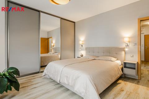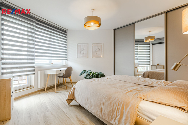 Exkluzivně nabízíme k dlouhodobému pronájmu prostorný byt 3+kk (82m2) se dvěma lodžiemi (15m2) a garážovým stáním. Byt prošel nákladnou rekonstrukci a nabízí zcela mimořádný standard bydlení, včetně moderního vybavení. Moderní kuchyňská linka se všemi vestavěnými spotřebiči, vestavěné skříně, postele s úložným prostorem, pračka. Veškerý komfort dovršuje klimatizace (topení /chlazení). Byt se nachází se ve 3. patře bytového domu s výtahem. Čtyřpodlažní novostavba disponuje vnitřním atriem s chodníčky, zelení a lavičkami, které poskytují odpočinek po náročném dni. K využití je i posilovna s možností saunování. Byt je velmi pěkně dispozičně řešený, neprůchozí pokoje, prostorná chodba a dvě toalety. Vytápění je zajištěno vlastním plynovým kotlem s průtokovým ohřevem teplé vody. Plastová okna, plovoucí podlahy. Orientován je na SZ. Bytový komplex je situován v těsné blízkosti Kyjského rybníka. Oblast se pyšní výbornou úrovní dopravní dostupnosti zajištěnou městskou hromadnou dopravou. Zastávky MHD leží v docházkové vzdálenosti novostavby. Ke stanici metra Rajská zahrada dojdete do deseti minut a k zastávce autobusu či tramvaje se chůzí dostanete do pěti minut. V okolí najdete veškerou občanskou vybavenost, například mateřskou i základní školu, obchody i nákupní centrum Černý most, restaurace, hospody, polikliniku, lékárnu a mnoho dalších služeb. Milovníci přírody a sportu mohou vyrazit na procházku, za odpočinkem, během či cykloturistikou k přilehlému Kyjskému rybníku.