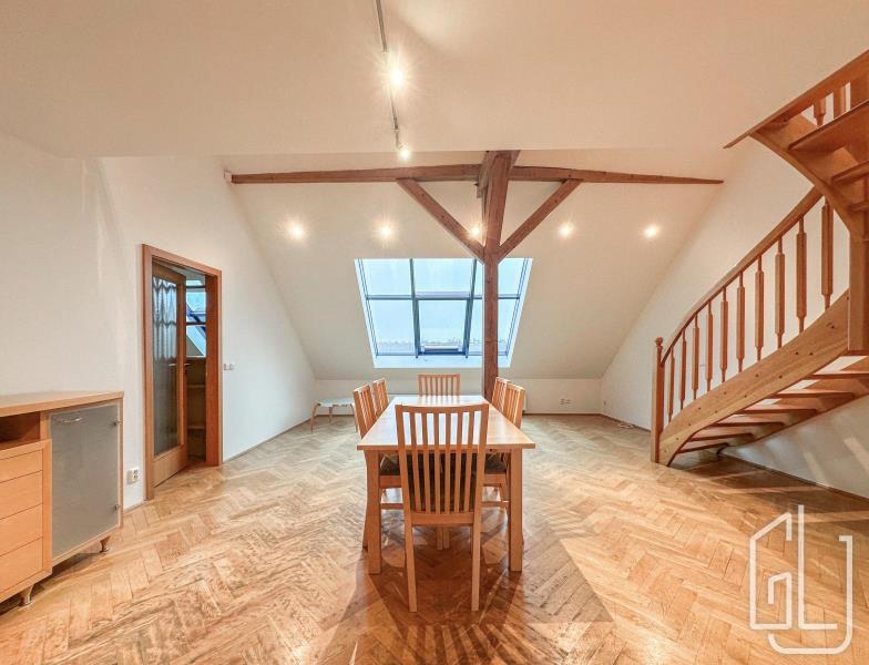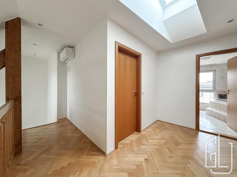 GLJ Partners nabízí k pronájmu prostorný a světlý mezonetový byt 4+1 s terasou a sklepem v atraktivní lokalitě Praha 3 - Vinohrady, jen pár kroků od náměstí Jiřího z Poděbrad a stanice metra A. Byt se nachází v nejvyšším patře bytového domu s výtahem a nabízí komfortní bydlení s dostatkem prostoru, světla a výjimečnými výhledy. Dispozice: 4+1 (mezonet) Podlahová plocha: 138,6 m2 Terasa: 13 m2 Sklep: 14,5 m2 (zděný) Patro: 5 NP (výtah) Nájemné: 65 000 Kč / měsíc Poplatky: 3 000 Kč / měsíc + elektřina a plyn K nastěhování: ihned Byt je částečně zařízený Vybavení a dispozice: Byt prošel v roce 2025 částečnou rekonstrukcí - byly instalovány klimatizační jednotky v ložnicích a obývacím pokoji, vyměněna hliníková okna s trojskly a venkovními žaluziemi a v horním patře doplněny světlovody. Dispozičně je byt řešen velmi prakticky: v přízemí se nachází vstupní hala se vstupem na terasu, prostorný obývací pokoj s jídelní a obývací částí s převýšeným stropem a výhledem na kostel, samostatná kuchyň se spíží a dalším vstupem na terasu, koupelna s odděleným WC a ložnice se šatnou. V horním patře jsou dva samostatné pokoje, koupelna, WC a prosvětlená galerie otevřená do obývacího pokoje. Lokalita: Škroupovo náměstí patří mezi nejžádanější adresy na Vinohradech a nabízí ideální kombinaci městského života a zeleně. V pěší dostupnosti se nachází Havlíčkovy sady i Riegrovy sady, kompletní občanská vybavenost, restaurace, kavárny, obchody, lékárna i oblíbené Trhy na Jiřáku. Lokalita má výbornou dopravní dostupnost díky metru A a tramvajovým spojům. Prohlídky jsou možné po předchozí domluvě. Kontaktujte nás pro více informací! ID zakázky: J1391