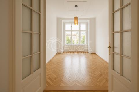Nabízíme k dlouhodobému pronájmu nevybavený, prostorný byt / kancelář 4+1 (147 m²) s balkonem a velkým sklepem (20 m2) v prestižní lokalitě Královských Vinohrad. Dispozice: Byt se nachází ve 4. patře udržovaného domu s výtahem. (Celá budova prochází kompletní rekonstrukcí, která bude dokončena na konci tohoto roku). Vstupní a spojovací hala, 3 prostorné ložnice, obývací pokoj, kuchyň s kuchyňskou linkou (lednice s mrazákem, sporák, trouba, digestoř a myčka). Dvě koupelny: koupelna s vanou a sprchovou zástěnou, dvojumyvadlem a WC, samostatné WC, koupelna se sprchovým koutem, umyvadlem a pračkou se sušičkou. K dispozici je také komora, balkon do klidného dvora se zelení a sklep. Bydlet na Královských Vinohradech znamená žít v jedné z nejžádanějších a nejpůvabnějších částí Prahy, kde se noblesa historické architektury přirozeně prolíná s moderním městským životem. Ulice Polská leží v samém srdci Vinohrad – v klidné zóně obklopené vzrostlými stromy a elegantními činžovními domy, jen pár kroků od Riegrových sadů, které nabízejí dechberoucí výhled na Pražský hrad i ideální místo pro ranní běh, piknik nebo posezení při západu slunce. V okolí najdete stylové kavárny, vinárny, restaurace i lokální obchody, které dávají čtvrti její nezaměnitelný charakter. Náměstí Jiřího z Poděbrad s ikonickým kostelem Nejsvětějšího Srdce Páně a oblíbenými farmářskými trhy je v docházkové vzdálenosti. Pro lepší orientaci doporučuji nahlédnout na přiložený plánek, ale pozor! Jsou tam ještě rozdělené byty č. 8 a 9. Ty jsou nyní spojeny. K nastěhování ideálně přelom leden/únor Nájemné: 69 000 Kč/měs. Služby: 950 Kč/os. Energie se převádějí na nájemce Vratná kauce dva nájmy / Provize V případě zájmu mě neváhejte kontaktovat, prohlídky jsou možné po domluvě se stávajícím nájemcem.
