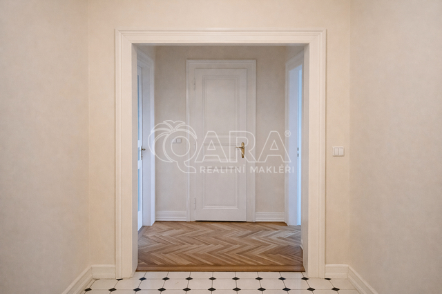 Nabízíme k pronájmu výjimečný, nezařízený byt o dispozici 4+1 a celkové ploše 151 m², se dvěma balkony, situovaný v reprezentativním historickém činžovním domě s recepcí, přímo v prestižní Pařížské ulici. Dům se nachází na jedné z nejluxusnějších adres v Praze, jen pár kroků od Staroměstského náměstí. Byt prošel kompletní a citlivou rekonstrukcí v roce 2023, při které byl kladen důraz na zachování původních architektonických prvků a historického charakteru interiéru. Nabízí tak exkluzivní bydlení s jedinečnou atmosférou. Velmi světlý byt je umístěn ve 3. nadzemním podlaží domu s moderním výtahem. Dispozice bytu zahrnuje prostornou vstupní halu, reprezentativní obývací pokoj, tři samostatné pokoje, komoru, koupelnu s vanou, toaletou a bidetem a samostatnou toaletu. Oddělená kuchyně je vybavena novou moderní kuchyňskou linkou se všemi spotřebiči (sporák, trouba, lednice s mrazákem, myčka, pračka). Interiér zaujme vysokými stropy, v hlavním pokoji se nachází originální historická stropní malba, v rohovém pokoji pak pozlacený štukový strop. Podlahy jsou pokryty dřevěnými parketami a ve všech místnostech je instalována klimatizace. Stylové bydlení v samotném srdci Prahy nabízí neopakovatelnou atmosféru historického centra a jedné z nejluxusnějších ulic Evropy. Kompletní občanská vybavenost v bezprostředním okolí – vyhlášené restaurace, kavárny, butiky i kulturní instituce. K nastěhování od 1. 7. 2026. Platby: Nájemné: 87 000 Kč V případě zájmu mě neváhejte kontaktovat.