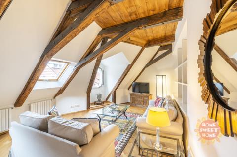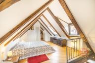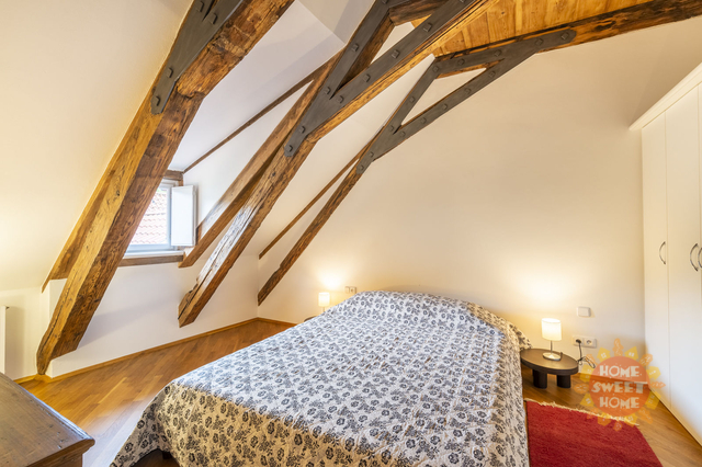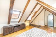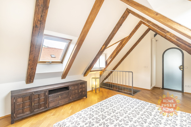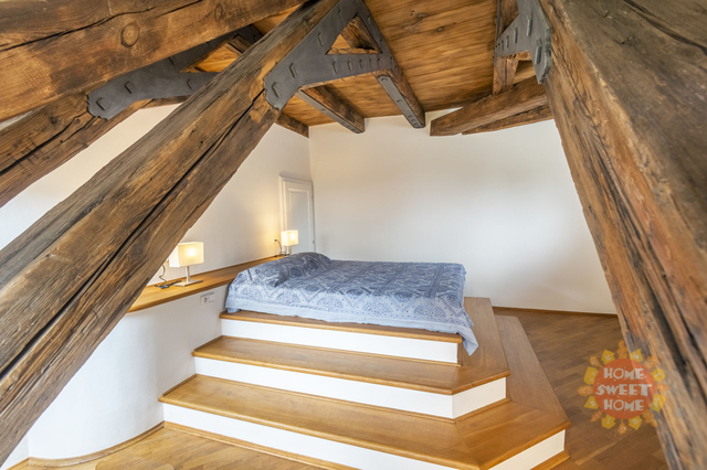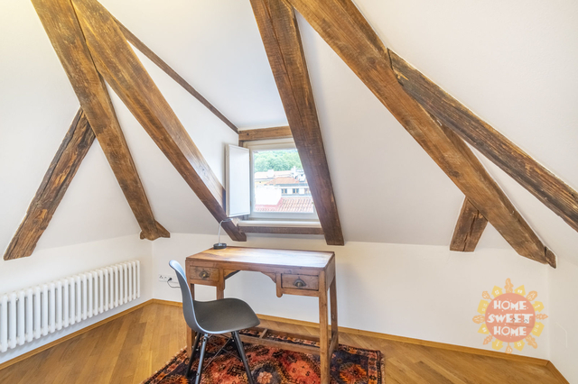 Dovolujeme si Vám nabídnout k pronájmu kompletně zařízený byt 4+1 s výjimečnou, nezaměnitelnou až magickou atmosférou, ve třetím patře neuvěřitelně krásného historického domu s výtahem ( byt má vlastní vstup do výtahu). S kouzelným přístupem přes téměř rajský dvoreček, s krásnými stromy a fontánkou. V prvním patře nalezneme dvě ložnice, koupelnu, útulný obývací pokoj s moderním kuchyňským koutem, kde je sporák se sklokeramickou deskou, trouba, lednice a myčka, ve druhém podlaží je open space prostor a koupelna. Na podlahách jsou parkety a dlažba. Byt se nachází v komplexu budov s historickým názvem Dům u tří červených srdcí. Tento komplex vznikal postupně v průběhu staletí v období románském, gotickém, renesance, baroka, klasicismu i v moderní éře. Díky citlivé, pečlivé a jednotné rekonstrukci té nejvyšší úrovně se z tohoto domu stalo místo, které si podrželo svou historickou identitu a přitom je komfortní a okouzlující zároveň. Výjimečnost této nemovitosti je dána atraktivní lokalitou (na Malé Straně, avšak na samostatném, tichém a jedinečném místě mezi Vlašskou ulicí a zelení petřínského parku) v blízkosti několika významných zastupitelských úřadů, chrámu sv. Mikuláše, Karlova mostu a Pražského hradu.