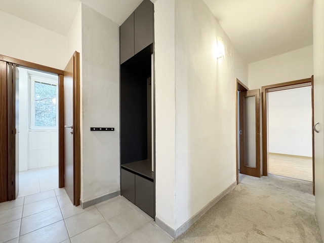 Nabízíme k pronájmu byt 4+1 s lodžií a vlastní garáží. Byt prošel celkovou rekonstrukcí - plastová okna, rozvody elektřiny a vody. Byt se nachází ve čtvrtém patře domu bez výtahu. Obývací pokoj s kuchyní a lodžií má celkovou rozlohu 29 m2, pokoje potom 6,8, a 12 m2. Ve dvou dětských pokojích jsou koberce, v ložnici a obývacím pokoji plovoucí podlaha. Dva pokoje a předsíň disponují celkem třemi vestavěnými skříněmi. WC je samostatné, v koupelně je vana opatřená sprchovací zástěnou. V celém bytě jsou dřevěné zárubně a dveře s jednotným dekorem. Prostorná kuchyně s velkým oknem je opatřena kuchyňskou linkou ve tvaru U, je vybavena lednicí Liebherr, digestoří Zanussi, myčkou Bosch, el. troubou a sklokeramickou deskou Fagor. Obývací pokoj má lodžii orientovanou na jih. K bytu náleží samostatná garáž v přízemí domu o rozloze 19 m2. V blízkosti domu se nachází škola, školka, dětské hřiště, sportovní areál Sletiště, akvapark, široké možnosti nakupování. Doslova za domem se nachází les s napojením na cyklostezky.