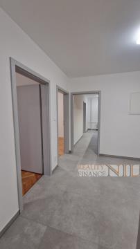 Nabízíme Vám k pronájmu krásný zrekonstruovaný byt 4+1 s lodžií ulici Dlouhá. Byt o rozloze 75 m2 + lodžie 4 m2, se nachází ve 4 patře panelového domu po revitalizaci. Byt je velmi hezky dispozičně řešený, a sestává ze 4 samostatných neprůchozích pokojů, kuchyně, předsíně, koupelny a WC. K bytu přísluší lodžie přístupná z bytu a komora v mezipatře domu. Byt je po celkové rekonstrukci: je vybaven novou kuchyňskou linkou na míru s vestavěnými spotřebiči: el. sklokeramickou indukční varnou deskou, el. troubou, digestoří, mikrovlnou troubou a myčkou nádobí. V bytě jsou nové rozvody elektřiny, vody a odpadů, nové podlahy v kombinaci dlažby v předsíni a kuchyni a parket v pokojích, které prošly také renovací. Nové omítky, stropy s LED osvětlením, nová koupelna je se sprchovým koutem, zvlášť WC. Dům je v bezvadném stavu, má plastová okna, výtah, zateplenou fasádu. Topení a teplá voda je ústřední dálkově. Naše hodnocení: bezvadná lokalita, byt po celkové kvalitní rekonstrukci, blízkost MHD. Doporučuji pro rodinu s dětmi.