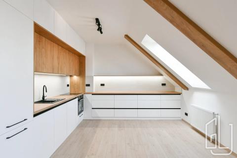 ID zakázky: L1418 GLJ Partners Vám nabízí k pronájmu světlý a prostorný mezonetový byt 4+kk o celkové ploše 108 m s terasou 20 m, situovaný v 5. (posledním) patře kompletně zrekonstruovaného cihlového domu s výtahem. Nemovitost se nachází v atraktivní lokalitě Praha 4 Nusle, jen pár minut chůze od Náměstí Bratří Synků, v oblasti s vynikající dopravní dostupností a kompletní občanskou vybaveností. Dispozice: 4+kk (mezonet) Plocha bytu: 108 m Terasa: 20 m Patro: 5. (poslední) Výtah: ano Vytápění: plynový kotel Stav: po rekonstrukci Byt nezařízený Nájem: 55.000 kč Poplatky: 7.500 kč Kauce: 2 měsíční nájmy K dispozici: ihned Dispozice a vybavení: Dolní patro bytu tvoří prostorný obývací pokoj s plně vybavenou kuchyňskou linkou (indukční varná deska, trouba, myčka, pračka), jídelní kout, vstupní hala a samostatná toaleta. V horním patře se nachází tři ložnice s vestavěnými úložnými prostory, koupelna s vanou, sprchovým koutem a druhou toaletou a přístup na terasu (20 m) orientovanou do klidného vnitrobloku. Terasa nabízí příjemné soukromí a ideální místo pro relaxaci nebo letní posezení. Byt prošel kompletní rekonstrukcí a je vybaven v moderním standardu plovoucí laminátové podlahy, keramická dlažba, plynový kotel a bezpečnostní systém. Lokalita a občanská vybavenost: Nusle patří mezi oblíbené pražské čtvrti díky své blízkosti centru města, zeleným parkům a živé komunitní atmosféře. V okolí se nachází parky Na Fidlovačce, Jezerka, Folimanka a Grébovka, ideální pro volnočasové aktivity. Nedaleko je i komunitní zahrada Mečislavka a nákupní centrum Arkády Pankrác. Skvělá dopravní dostupnost tramvajové linky z Náměstí Bratří Synků vás dopraví na metro I. P. Pavlova za 5 minut a na Muzeum za 7 minut. Tento byt představuje ideální spojení klidného bydlení s výbornou dostupností do centra města. Díky svému charakteru, prostorné dispozici a umístění v oblíbené rezidenční části Nuslí je vhodný jak pro rodiny, tak pro jednotlivce.